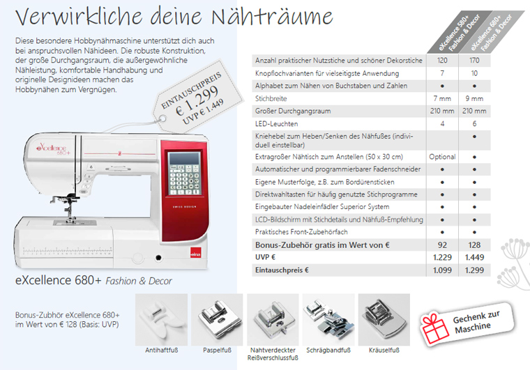 der Marken SINGER, Brother, Husqvarna, PFAFF,